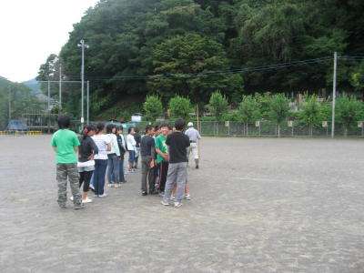 写真:校庭を出発する1組の様子。