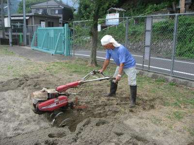 学校には耕運機はないので、わざわざ自宅から軽トラックに積んでもってきてくれました。