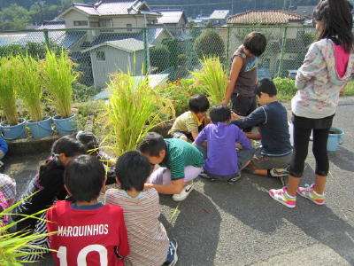 バケツから、うまく稲の束が抜けた時は、ちょっとした歓声が、沸き上がっていました。