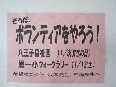 恩一小のウォークラリー(11月13日実施)のボランティア募集のポスターも貼ってありました。