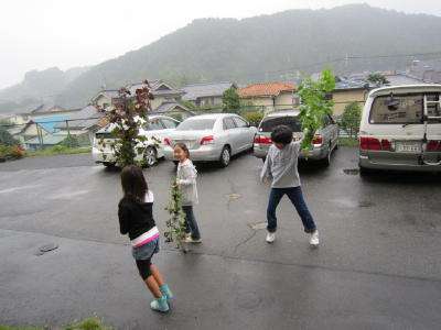 保護者の協力を得て、これからおいしい紫蘇ジュース作りです。