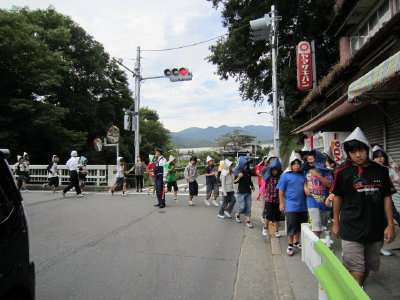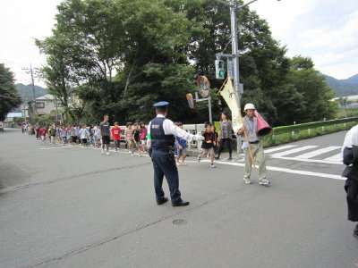 新しくなった松竹橋の信号では、下恩方駐在所の山下さんが、交通整理をしてくださいました。お陰でスムーズに横断することができました。