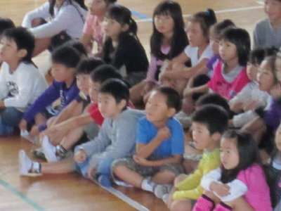 途中から体育館に入ってくる児童も、おしゃべりせず、足音を忍ばせて、静かに入場できました。