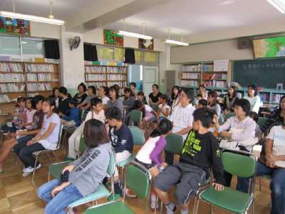 秋晴れの素晴らしいお天気の中、図書室にお母様・お父様方や、恩一小児童など40名近くが集まりました。