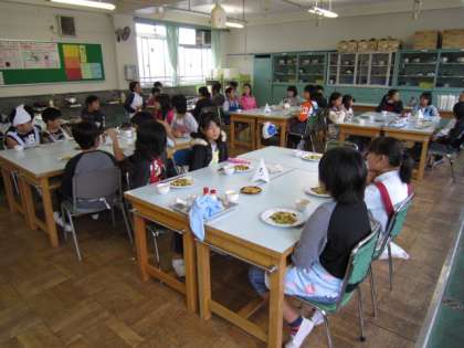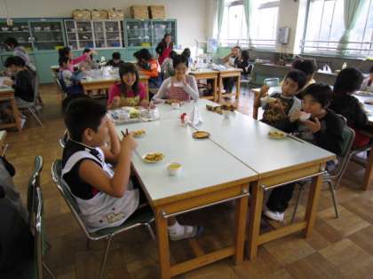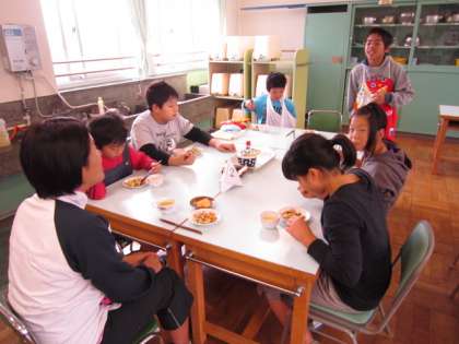 日直さんの「頂きます。」の合図で食べ始めると、家庭科室中笑顔が広がりました。