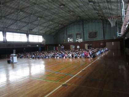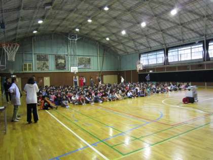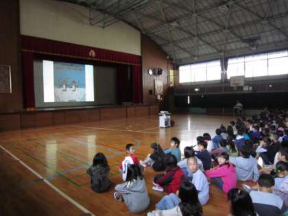 10月14日(金)に行われた、保護者による読み聞かせと同様、体育館にプロジェクターで大きく写し、映画会のようでした。