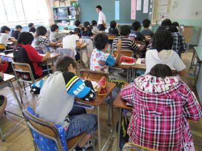 最後に山口教諭自身の体験を話したことで、ぐっと児童の身近な問題となり、児童の考えも深めることができました。