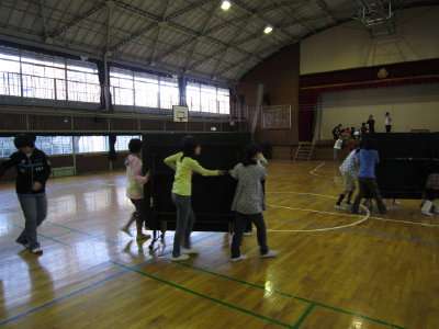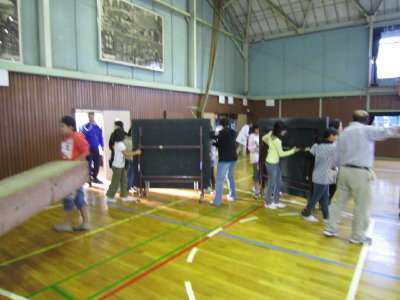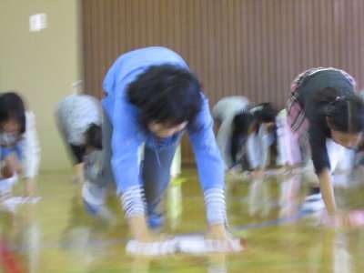 秋らしく、体育館の中は少しひんやりしていましたが、ぞうきんがけをしている6年生の額には、うっすらと汗がにじんでいました。