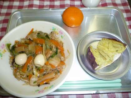 あんかけ焼きそば・焼き芋・みかん・牛乳