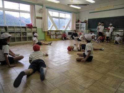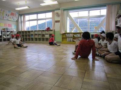 ソフトボールクラブは、絵本室で、シッティングベースボール(?!)を行いました。