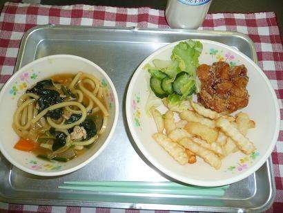 今日はリザーブ給食の日です リザーブとは「予約する」と言う意味ですが、AセットBセットを自分で予約して食べました。隣のお友達と違うメニューを食べるのもなかなか楽しいものでしたよ。注文結果はAセットが300人・Bセットが100人で「イカは「唐揚げ」の魅力に完全にノックアウトされてしまいました!!