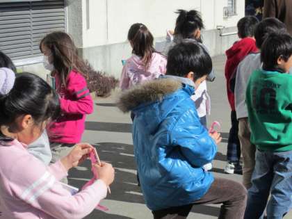 毎日一人ずつ、学校サポーターをお願いし、勉強の補助や、校庭や近隣での活動に引率補助をしていただいています。