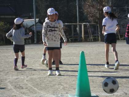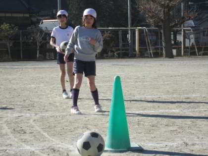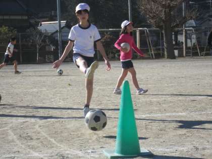 ただ蹴って、コーンに当てるだけですが、いろいろ考えます。