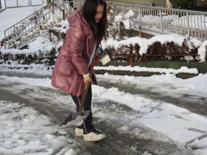 岡林教諭や、鈴木教諭も出勤して、雪かきスタートです。