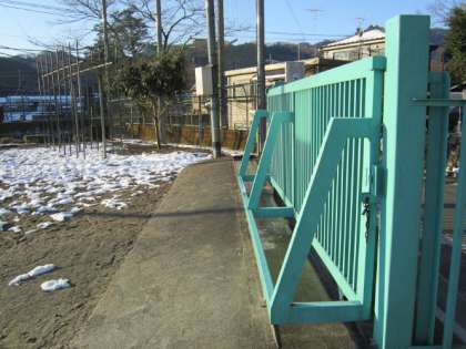 西側の門を、用があって開けようとしましたが、タイヤが凍りついていて、動きませんでした。