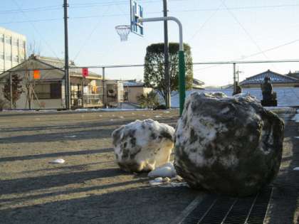 校庭の雪だるまも、回りの雪がとけてしまっていて、ぽつんと寂しそうでした。