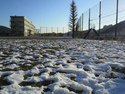 昨日あんなにあった雪も、一番雪が残っているブランコ前もこの程度。(写真上)
