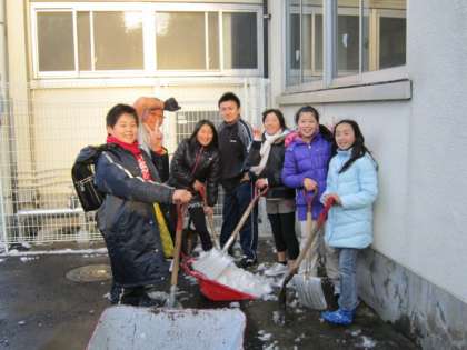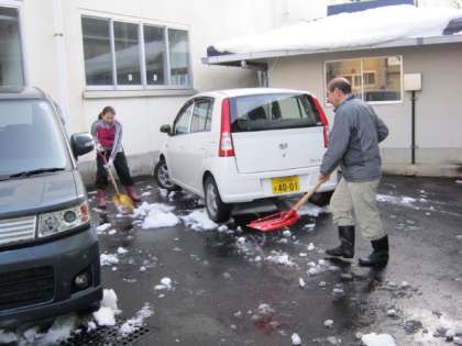 昨日の放課後、校舎裏にある駐車場の雪かきを手伝ってくれた5年生。