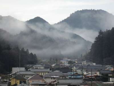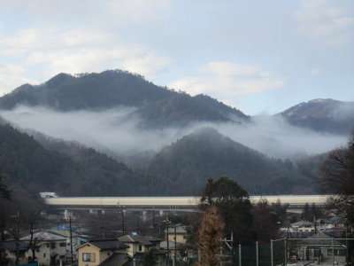 2月18日(金)雨が上がり、暖かさのためかもやが立ち、中国の山のよう。