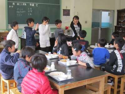 各班に分かれて給食を食べたり、ゲームをしたりしました。