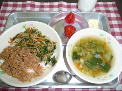 今日は春雨スープがリクエストでした。季節のいちごもいただきました。