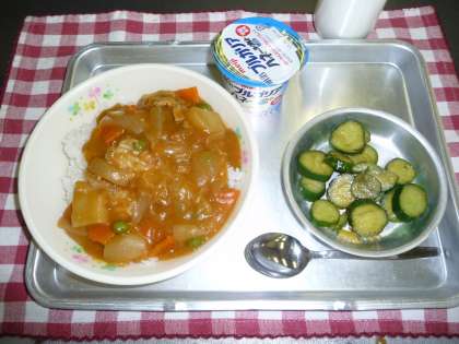 カレーライス・ピリカラきゅうり・ヨーグルト・牛乳