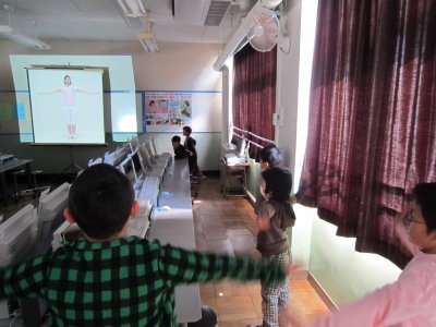 写真:この日も中休みに、さくらまつりに向けてTOKYO体操を練習していたのですが・・・。