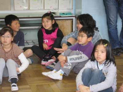 指示が、ほぼ英語で出しているのですが、分かりやすい Class English(クラス イングリッシュ = 教室で外国語活動を行う際に一般的に使われる指示のための英語)なので、長田教諭の身振り手振り(ジェスチャー)も手伝って、児童は全く困らない様子です。