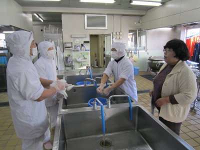 夜中0時過ぎに連絡したにもかかわらず、朝7時には身支度を完了した調理員が給食室に集合し、打ち合わせを始めました。