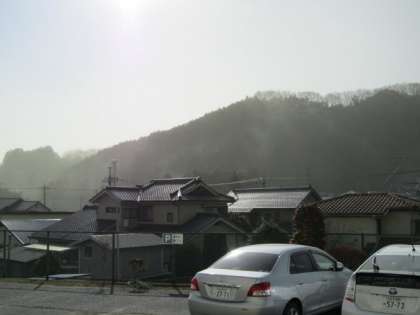 下の写真では、遠くの山が、花粉のためぼやけて見えているのが分かるでしょうか。