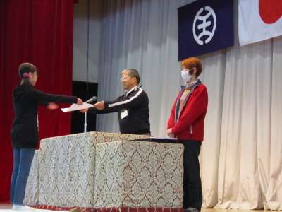 写真上・中:証書授与の場面