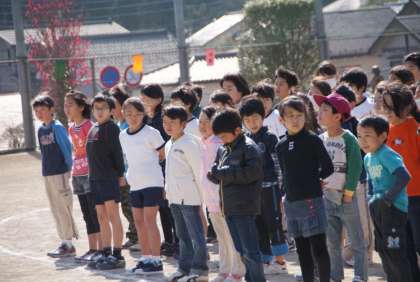 ACのコマーシャルの影響もあり、渡部主幹教諭の話に、時々笑顔を見せながらも、よく話を聞いていました。