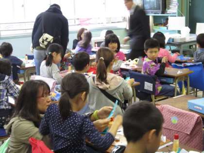 参観のお母さんおとうさん方も、私語なく、児童の活動を見守ってくださったり、手伝ってくださったり。