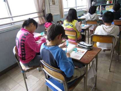 中には、形作りに夢中になり、算数そっちのけで「お面作り」を楽しむ児童もいました。