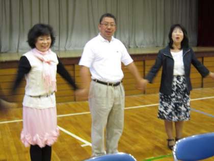 歓送迎会のとりは、恒例の「夕やけ小焼け」の全員合唱です。