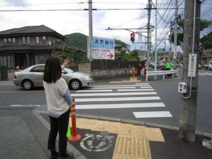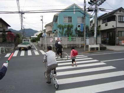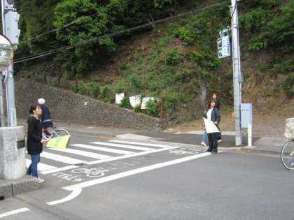 10日(火)は、川原宿交差点に鈴木主任教諭(写真上)、川崎クリニック前(写真中)には三浦教諭、福祉園前には北原教諭、そして松竹橋(写真下)には長田教諭が立って指導にあたりました。
