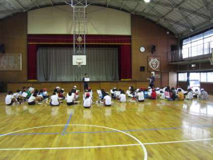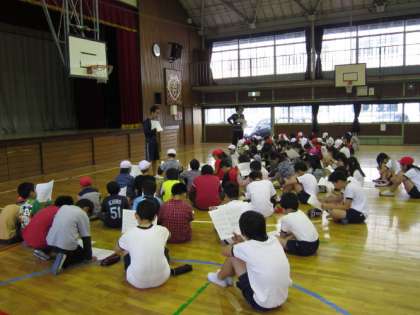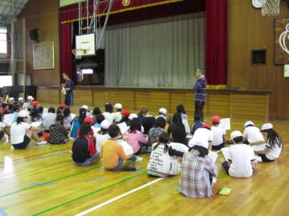 担当の岡林教諭や野崎主任教諭の話を聞く姿もさすが高学年の代表選手たちでした。