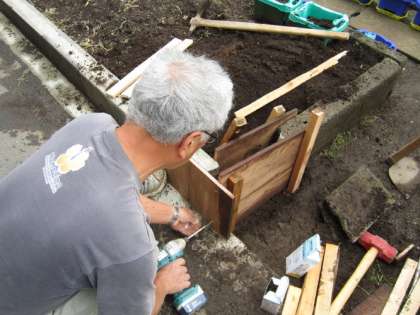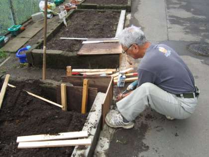 5月12日(木)大谷用務主事が、校舎南側の学級花壇を修理していました。
