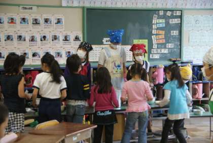 14班あるので、1年1組から6年2組までの教室と、4階の家庭科室(遊びは音楽室)と、3階のフリールーム(算数少人数の部屋)を活用しています。