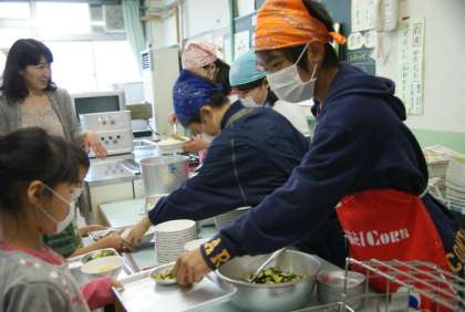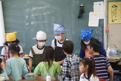 「普段は忘れ物がたくさんあるんですが、縦割り給食班の時には、身支度を忘れる児童は一人もいないんです。」