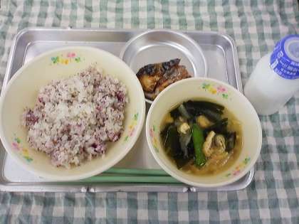 5月2日の献立は、ゆかりごはん・鯖の生姜煮・みそ汁・牛乳でした。