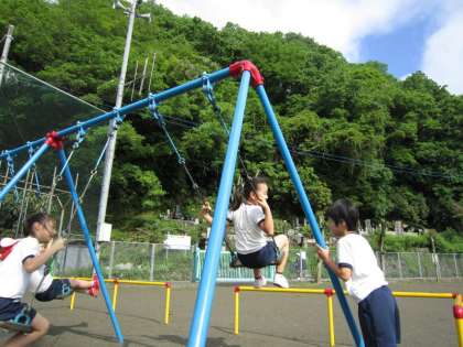 校庭には、久しぶりの青空を満喫しようと、早くも児童が飛び出てきました。