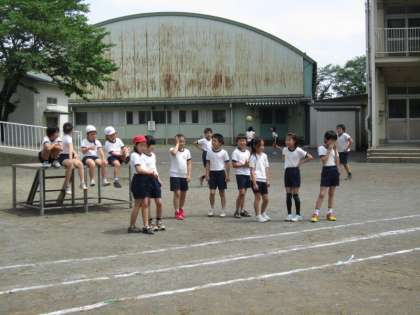 5月13日(金)中休みに低学年リレーの練習を校庭で行いました。
