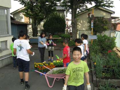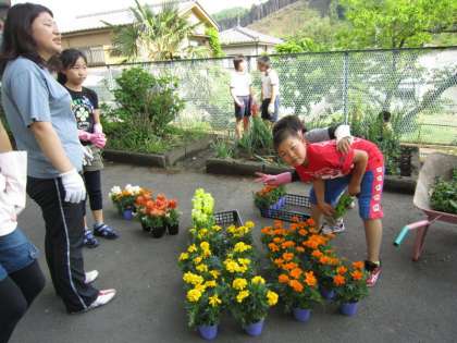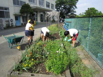 花壇の雑草を抜き、新しく花の苗を植えました。