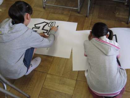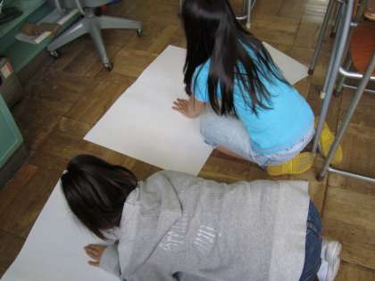 児童会室では、スローガンを一文字一文字拡大して書いていました。