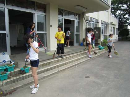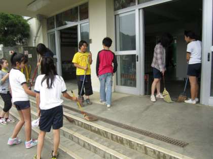 朝会の後、いつものように、そして当たり前のように、6年生が昇降口を清掃してくれました。