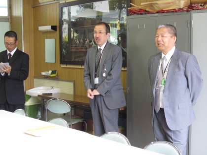 5月17日(火)朝、わざわざ恩方中学校の西校長先生(上の写真 中央)が、業者の方(同 左)とお見えになりました。