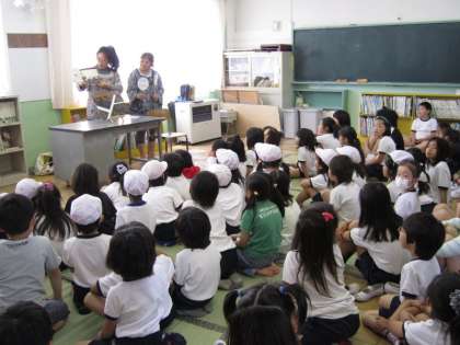 クラスでの読み聞かせ、今回のような学校全体での読み聞かせ、それに、図書室・絵本室の整頓(図書ボランティア)、どの活動でも結構です。