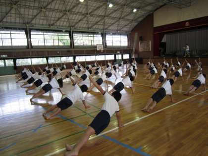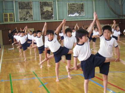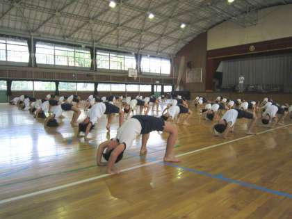 体育館で5・6年生が合同で組み体操の練習をしていました。