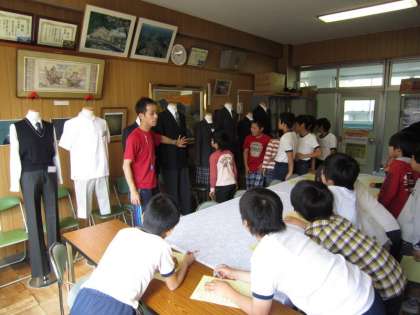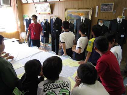 小中一貫校である恩方中学校の制服を6年1組が見せてもらいました。